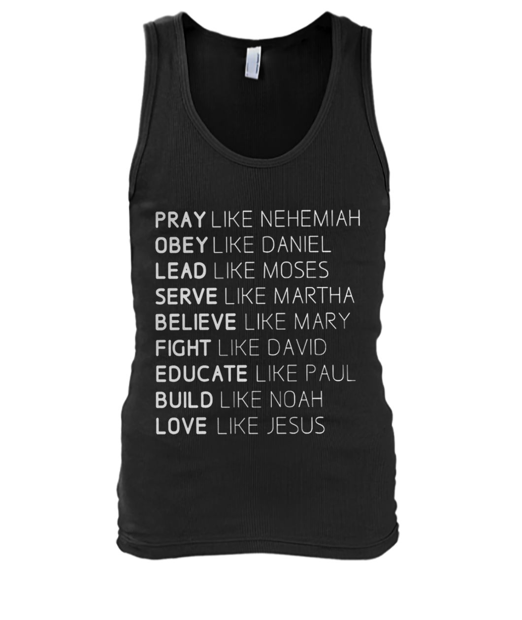 Or you can get it in here: https://www.moteefe.com/store/pray-like-nehemiah-obey-like-daniel-lead-like-moses-serve-like-martha-love-like-mary-shirt