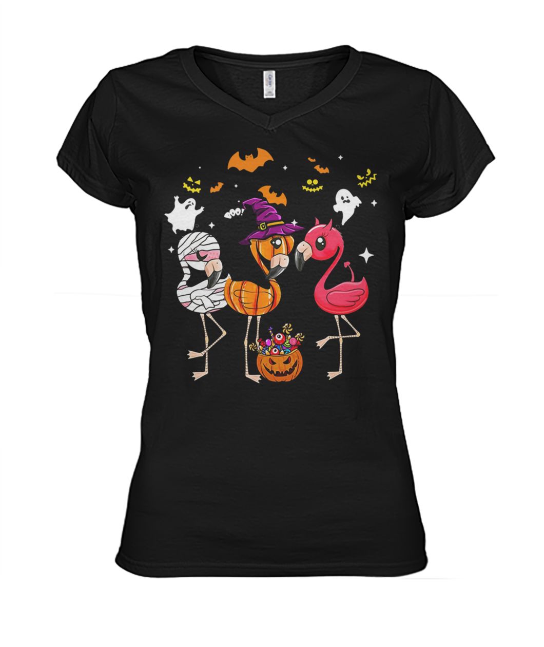 Or you can get it in here: https://www.moteefe.com/store/flamingo-halloween-pumpkin-witch-ghost-shirt